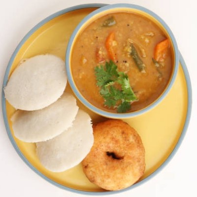 | 2 idli and 1 vada. Vegan, Jain, and gluten-free. | ||