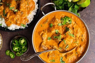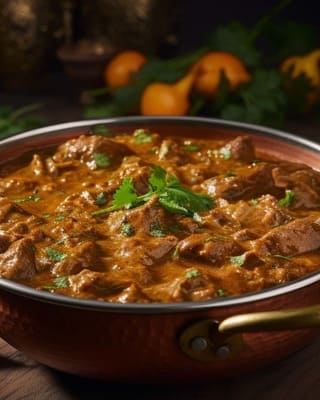| Tender boneless chicken cooked in a cashew, almond, and coco... | ||